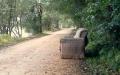 Um sofá na estradinha de areia