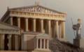 Em Atenas, o antigo aglomerado urbano se espalhava pelas colinas, entre as quais as de Egaleo, Himeto, Licabeto e da Acrópole (a mais importante estrategicamente). Ainda que no início fora a sede do governo, logo a Acrópole se converteu em lugar dedicado aos deuses. Além do Pártenon, ergueram-se os templos dedicados a Atena Nike, o Erectêion e os altares de Zeus e de Atena. Ao redor da acrópole ficavam outras edificações famosas, o templo e o teatro de Dioniso. Mais à frente, a praça pública, o templo de Teseu e o tribunal de justiça, este na colina do Areópago. |
