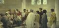 Os espartanos fazem uma distribuição de víveres a todos os cidadãos atenienses.Uma multidão se aproxima para receber e entre eles, Sócrates, que é empurrado e ajudado a levantar-se por alguns de seus alunos.